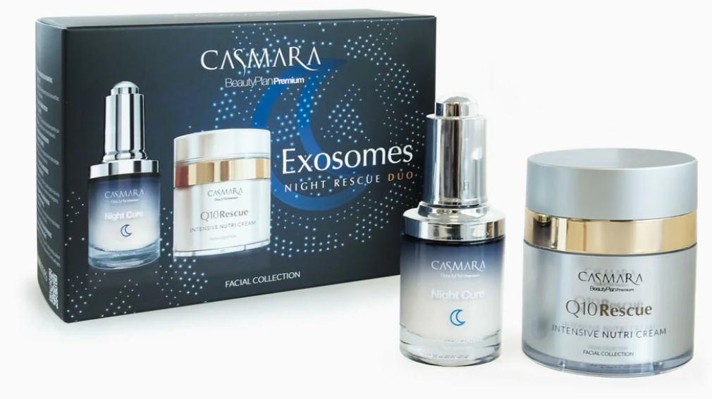 - El Exosomes Night Rescue Duo está especialmente formulado para quienes buscan una solución regeneradora intensiva que actúe durante la noche, ayudando a reparar, nutrir y revitalizar la piel.